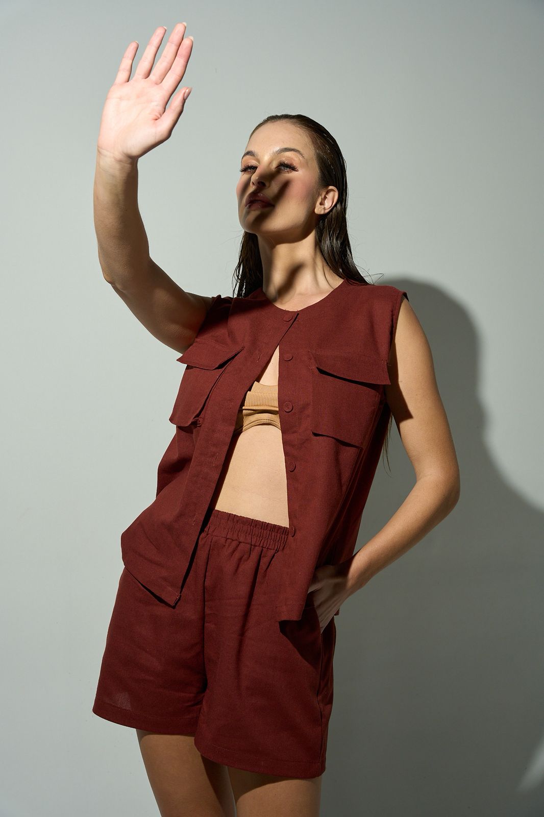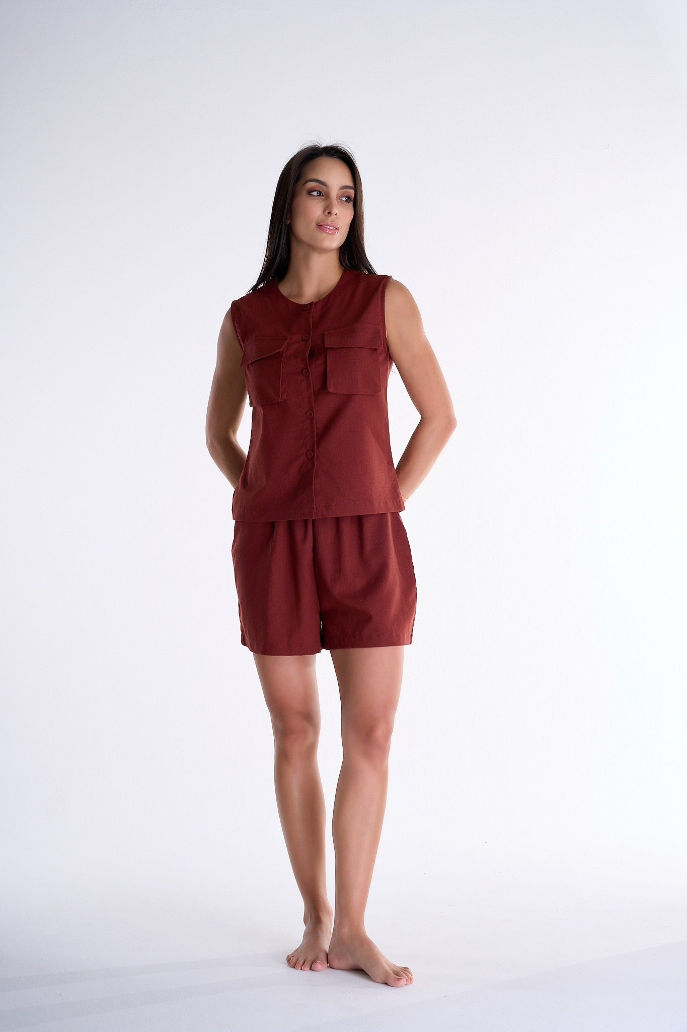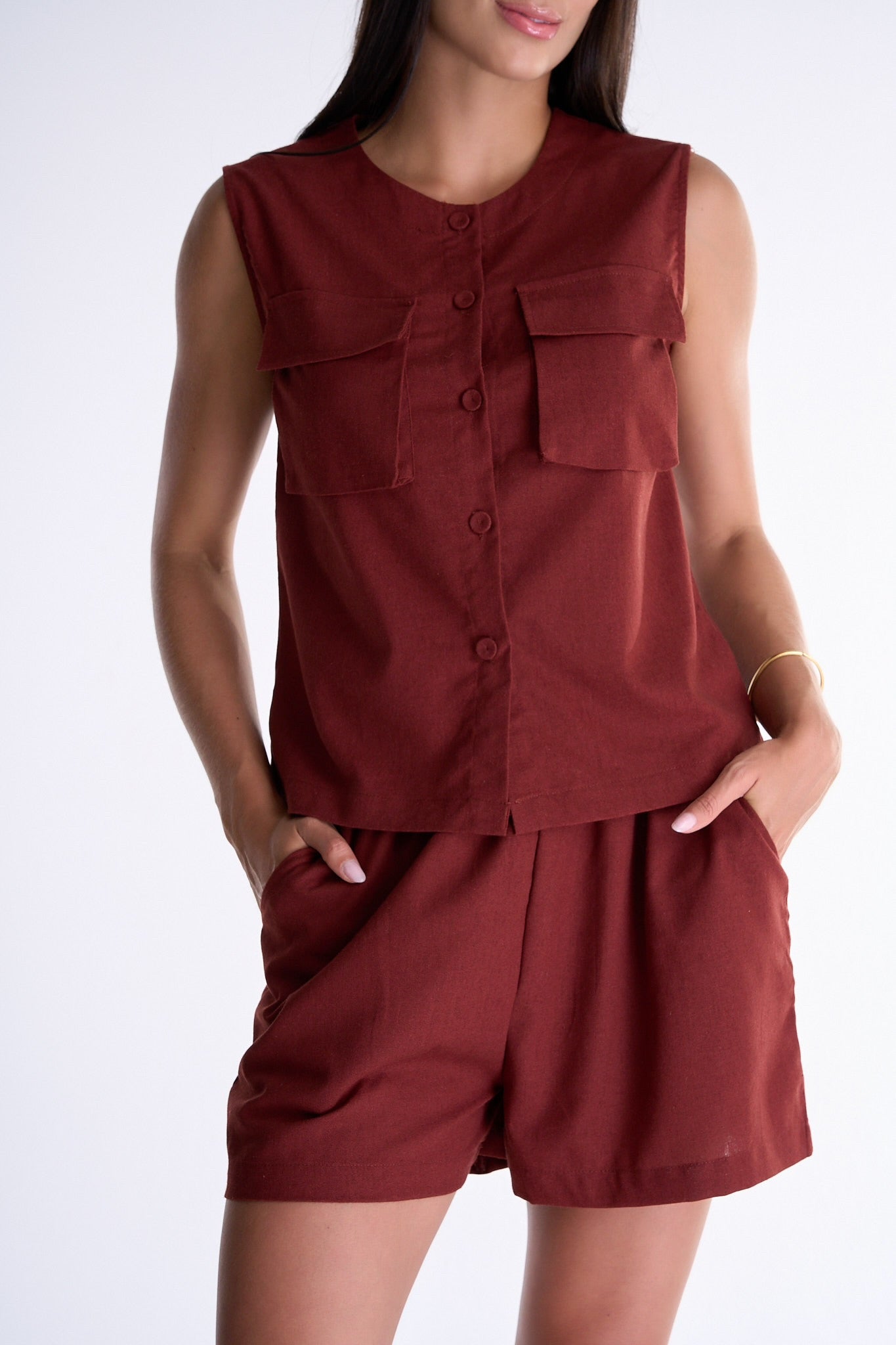 Camisa con corte clásico y manga sisa amplia. Cuello clásico y cierre frontal con botones. Bolsillos patch en el pecho. Diseño fresco y versátil